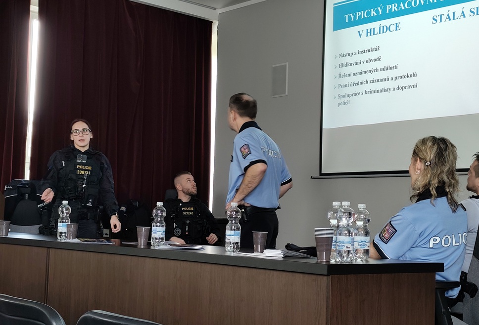 Poté následovala prezentace, ve které policisté studentům představili: podmínky přijetí do služebního poměru, základní informace o policejní službě, práci jednotlivých útvarů – hlídkové služby, obvodního oddělení a dopravního inspektorátu. Součástí výkladu bylo i srozumitelné vysvětlení rozdílů v jejich každodenní činnosti, díky kterým si studenti mohli udělat jasnější obrázek o tom, která policejní specializace je nejvíce oslovuje.