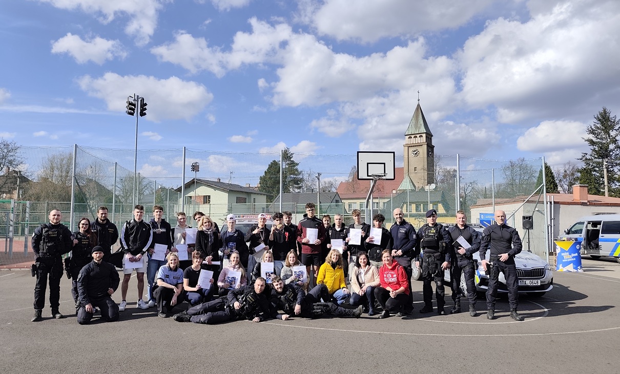 Program byl určen našim žákům i žákům gymnázia, kteří dostali jedinečnou možnost nahlédnout do zákulisí policejní práce a vyzkoušet si fyzické testy potřebné pro vstup do služebního poměru.